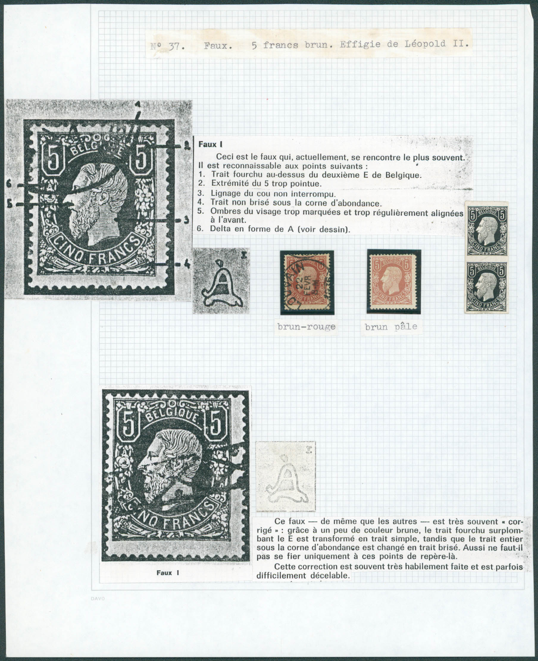 37 obl et 37A X - Faux montés sur feuille avec explications détaillées.