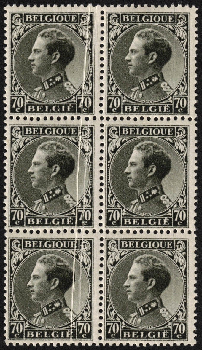 401 en bloc de 6 XX. Variété : pli accordéon sur 3 timbres.