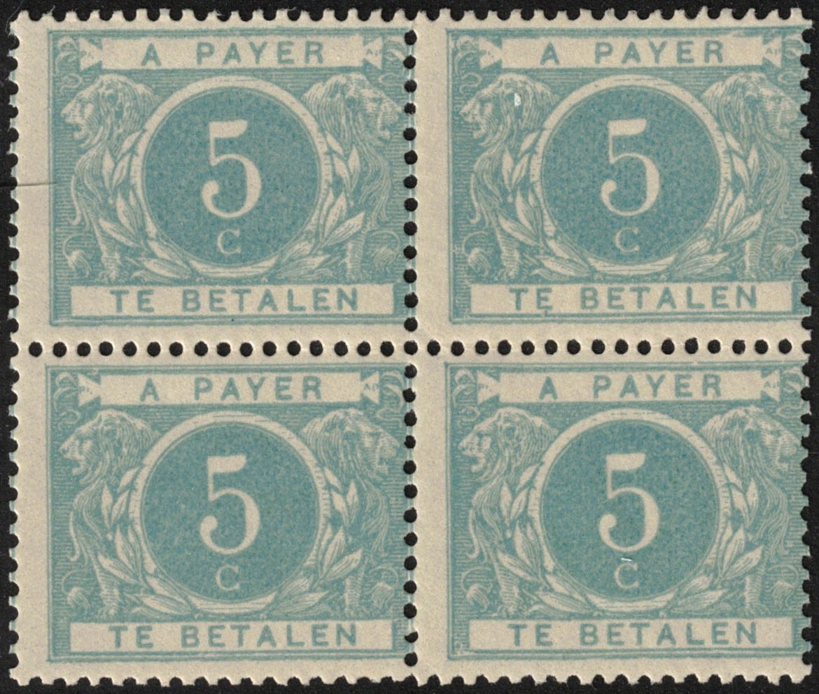 TX 3b, 5c bleu vert en bloc de 4 XX. Certificat photo Balasse, A. Michaux.