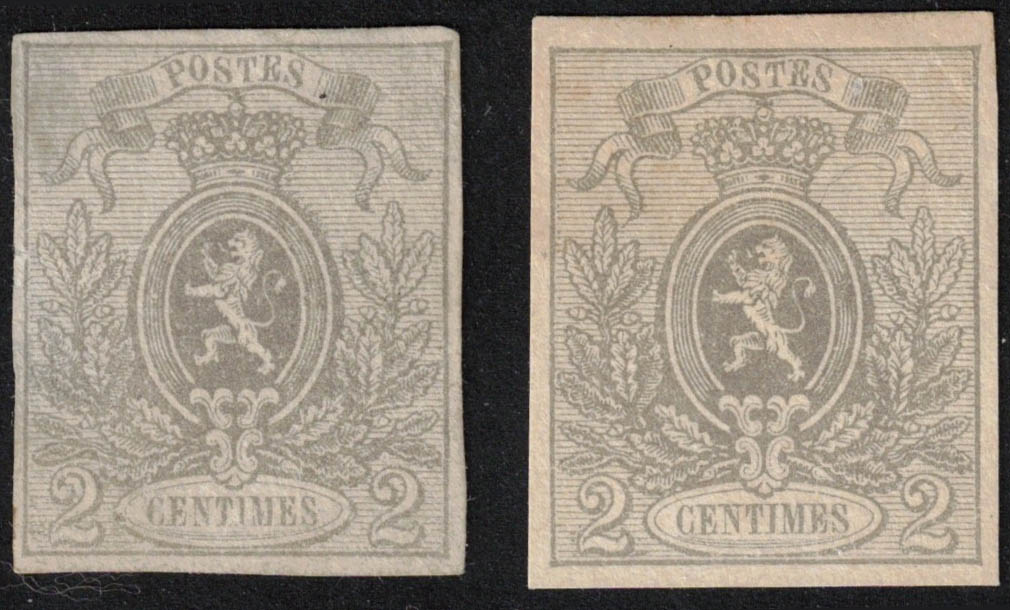 Petits Lions - Epreuves de la planche définitive de 50 timbres, 2c gris pâle et gris brunâtre sur papier blanc moyen. Dr J. Stes 1339 et 1340.
