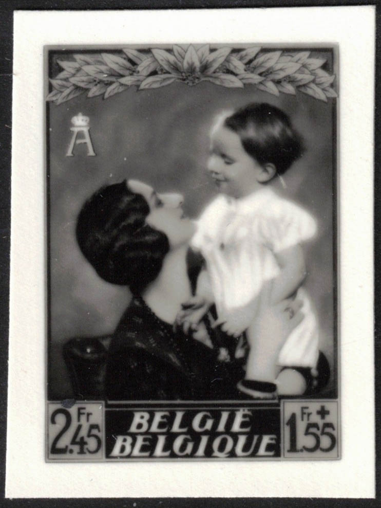 Reine Astrid et Prince Baudouin - Epreuves photographiques des 8 valeurs de la série de la maquette définitive par la firme J. Malvaux. Toutes les épreuves de la firme Malvaux sont peu courantes.