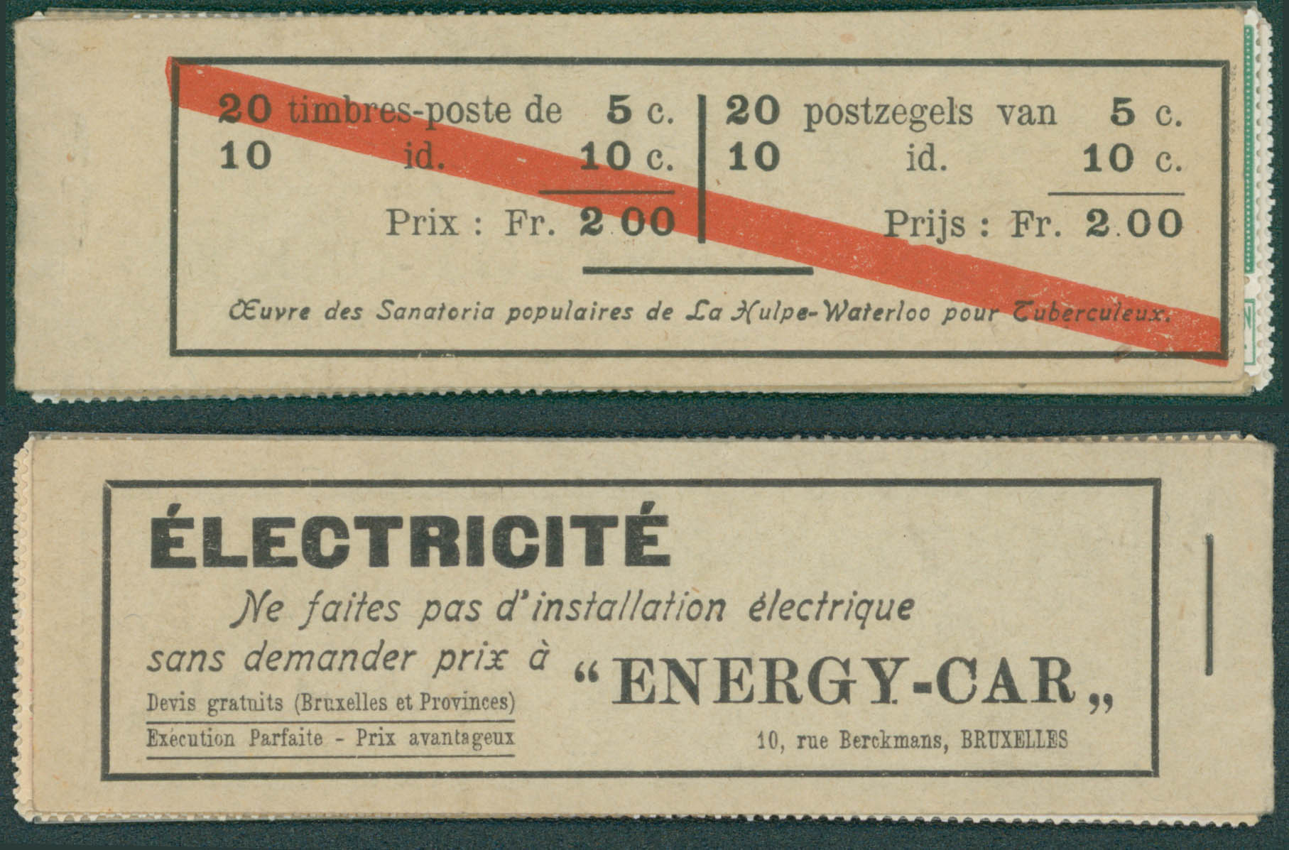 Carnet A10b XX - Couverture verte avec diagonale rouge et sans n° au dos. 30 timbres (20x110-10x123). Couverture avec publicité Energy Car (faces 2-3 et dos). Intercalaires translucides. Cote 275?.
