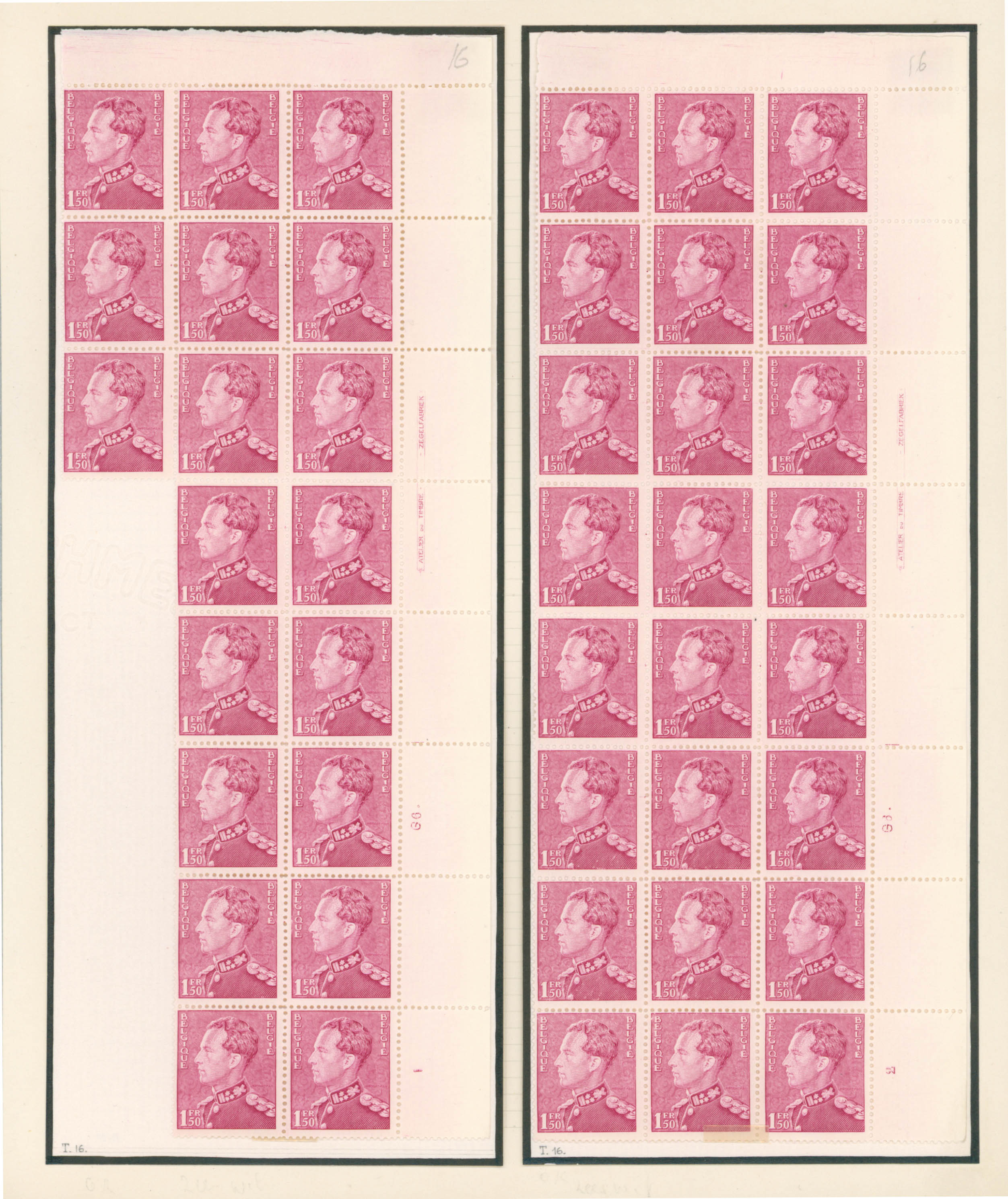 Poortman - 1 album Charles-Quint - 429 - 1F 50 - Splendide collection sur les 17 tirages à l'état neuf comprenant timbres, blocs, numéros de planches, inscriptions marginales, marques de gommage, nuances, variétés, bloc de 4 avec pli accordéon, bloc de 4 ND. Au total 534 timbres. Ex collection Loicq.