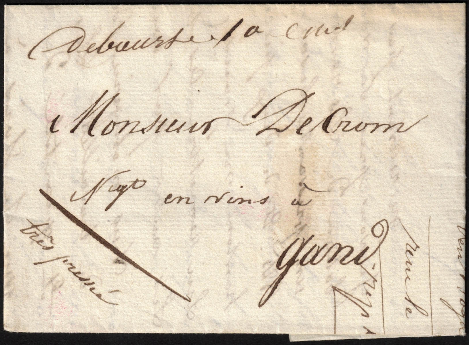 LAC datée de Pecq 7/4/1832 vers Gand. Manuscrit 'Déboursé 10 cent'. TB'