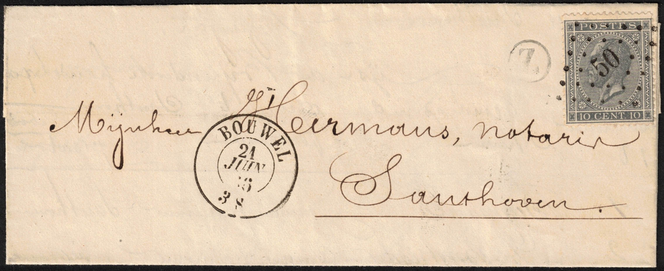 17 obl Lpts 50 + càd Bouwel du 21/6/66, boite Z, LAC vers Santhoven, càd verso.