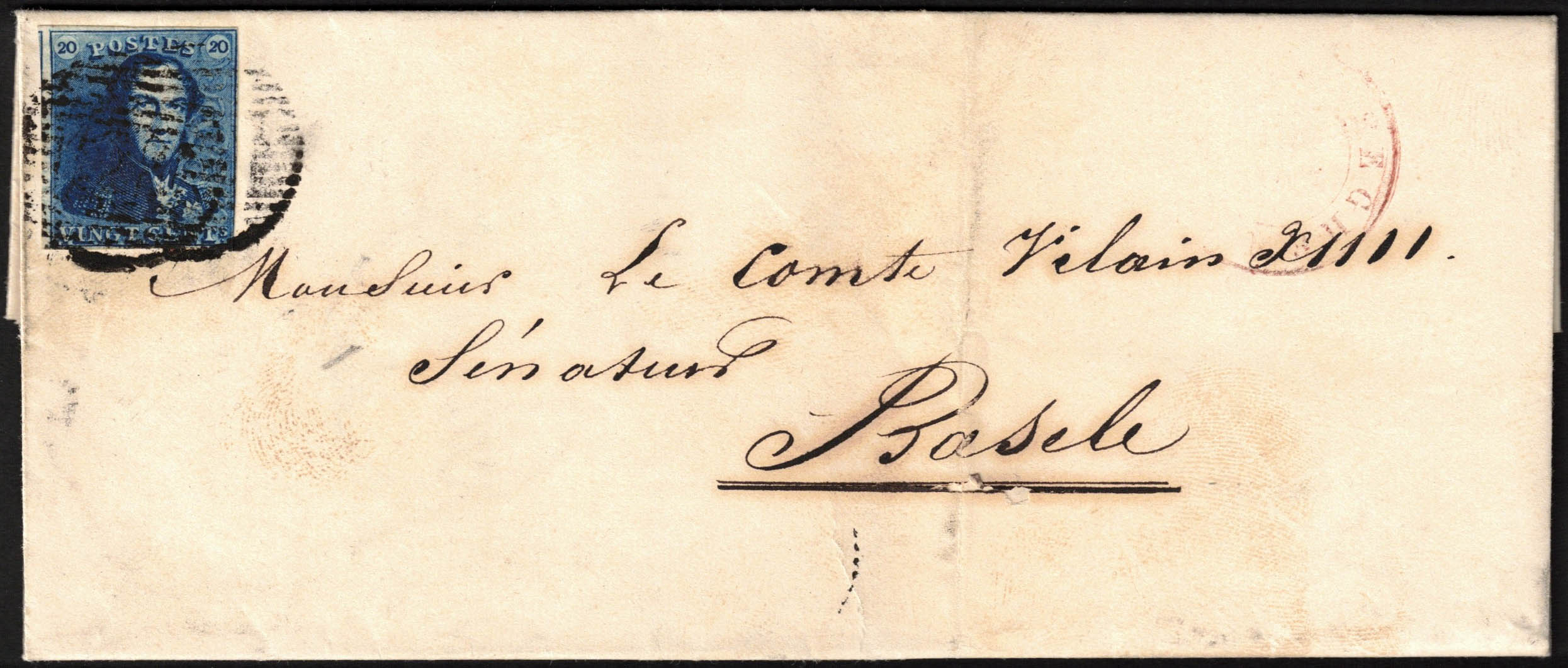 2 margé + voisin obl P 128 (frappé 2 fois) + càd Wareghem (illisible) sur LAC 19/8/49 vers Basel, càd Tamise 20/8 au verso.
