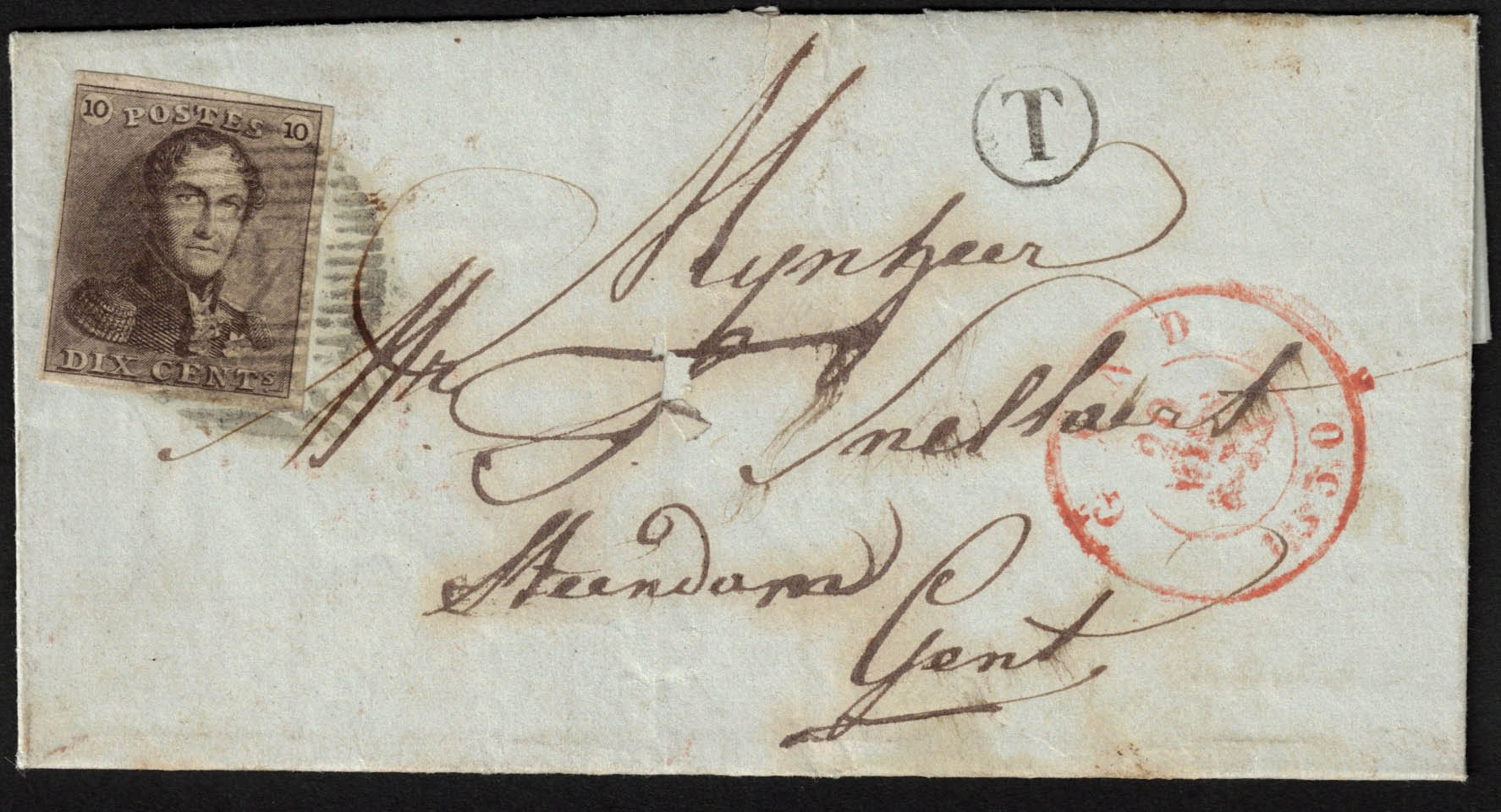 1 margé, obl P 45 + càd Gand 20/3/1850, boite T de Lochristi, LAC vers la ville.