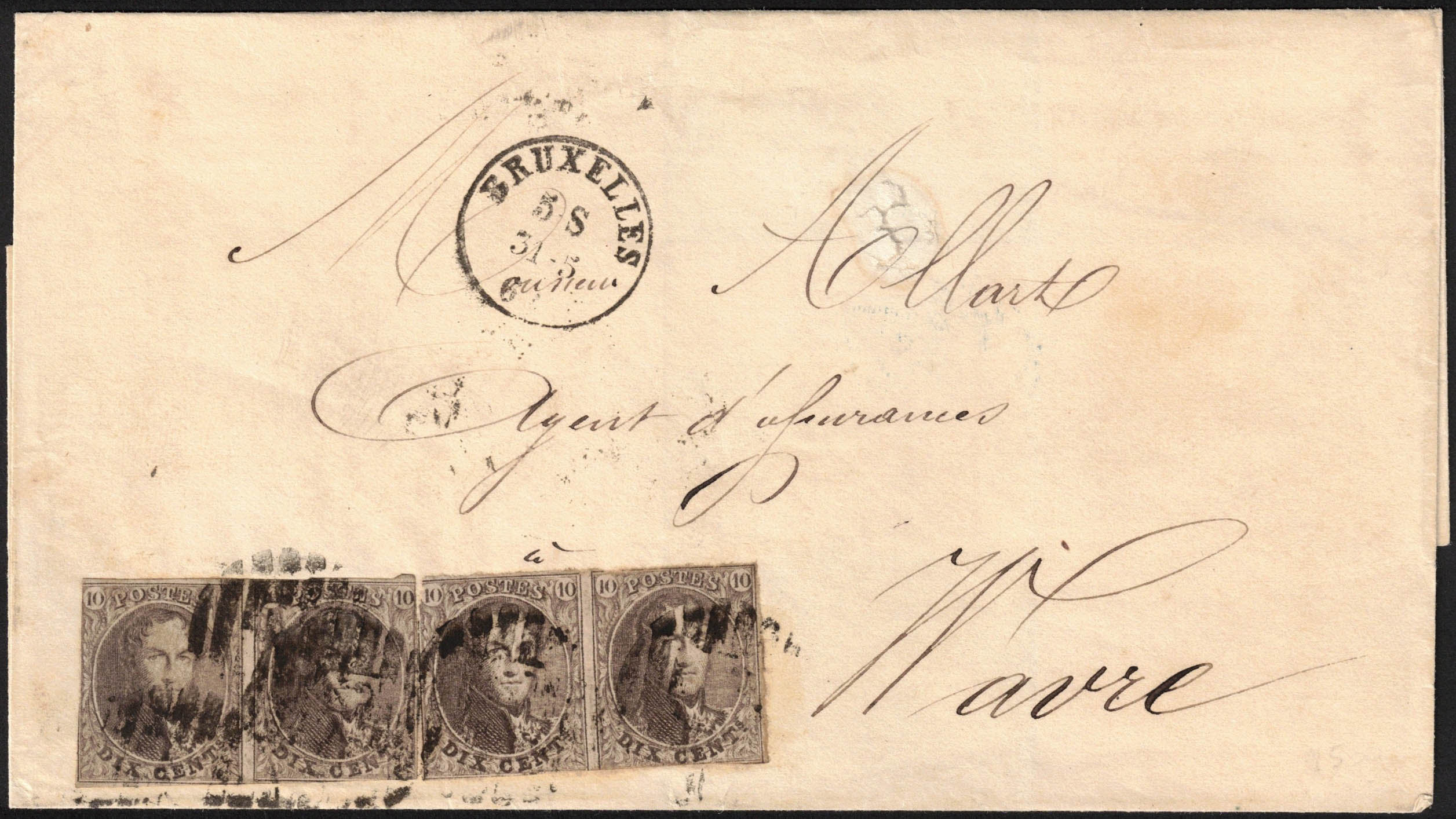 10x4 (2 paires, touchés) obl P 24 + càd Bruxelles 31/5/62 sur LSC vers Wavre, càd 1/6 au verso.