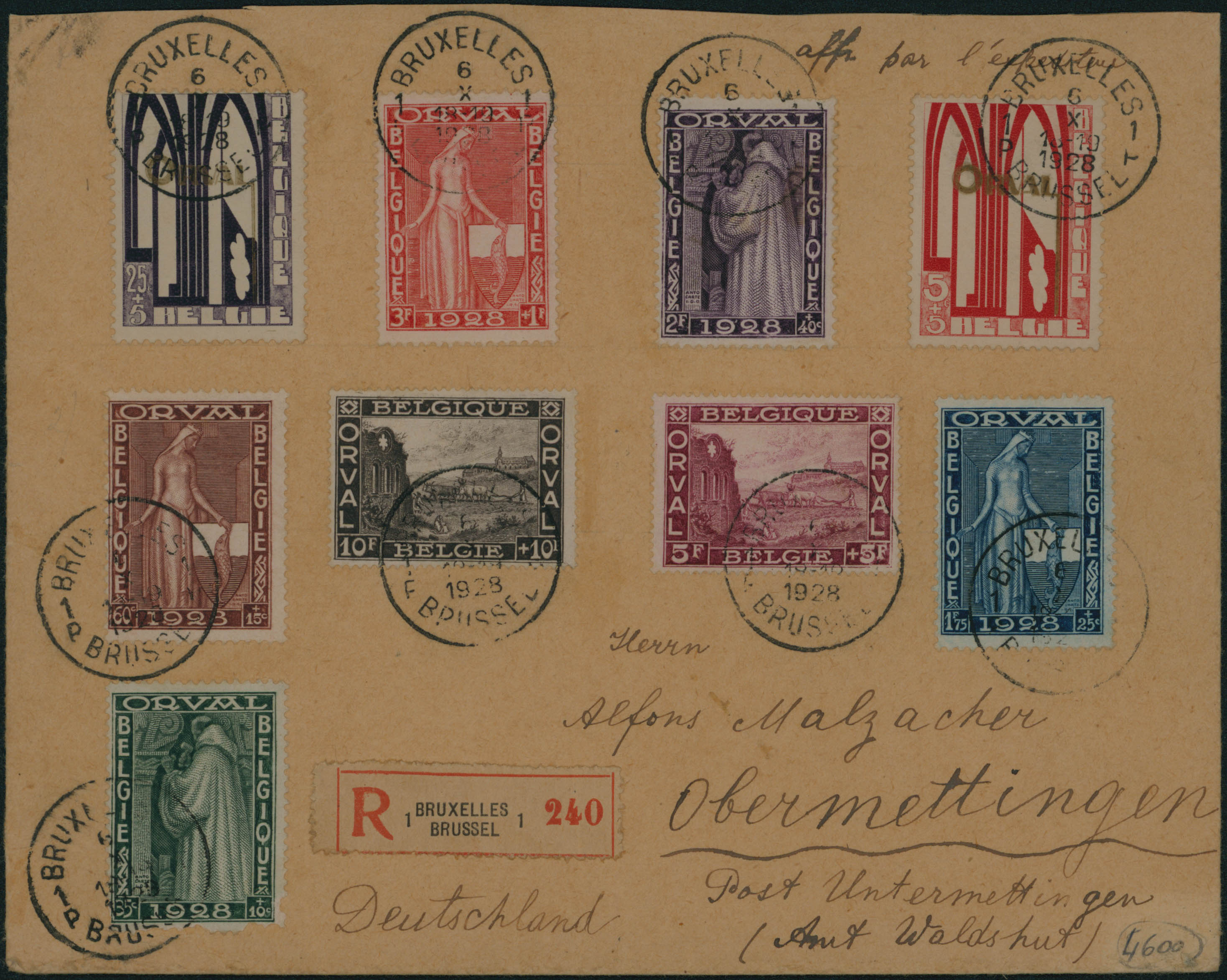 258 à 266 obl Bruxelles 6/10/1928 en rec vers l'Allemagne.