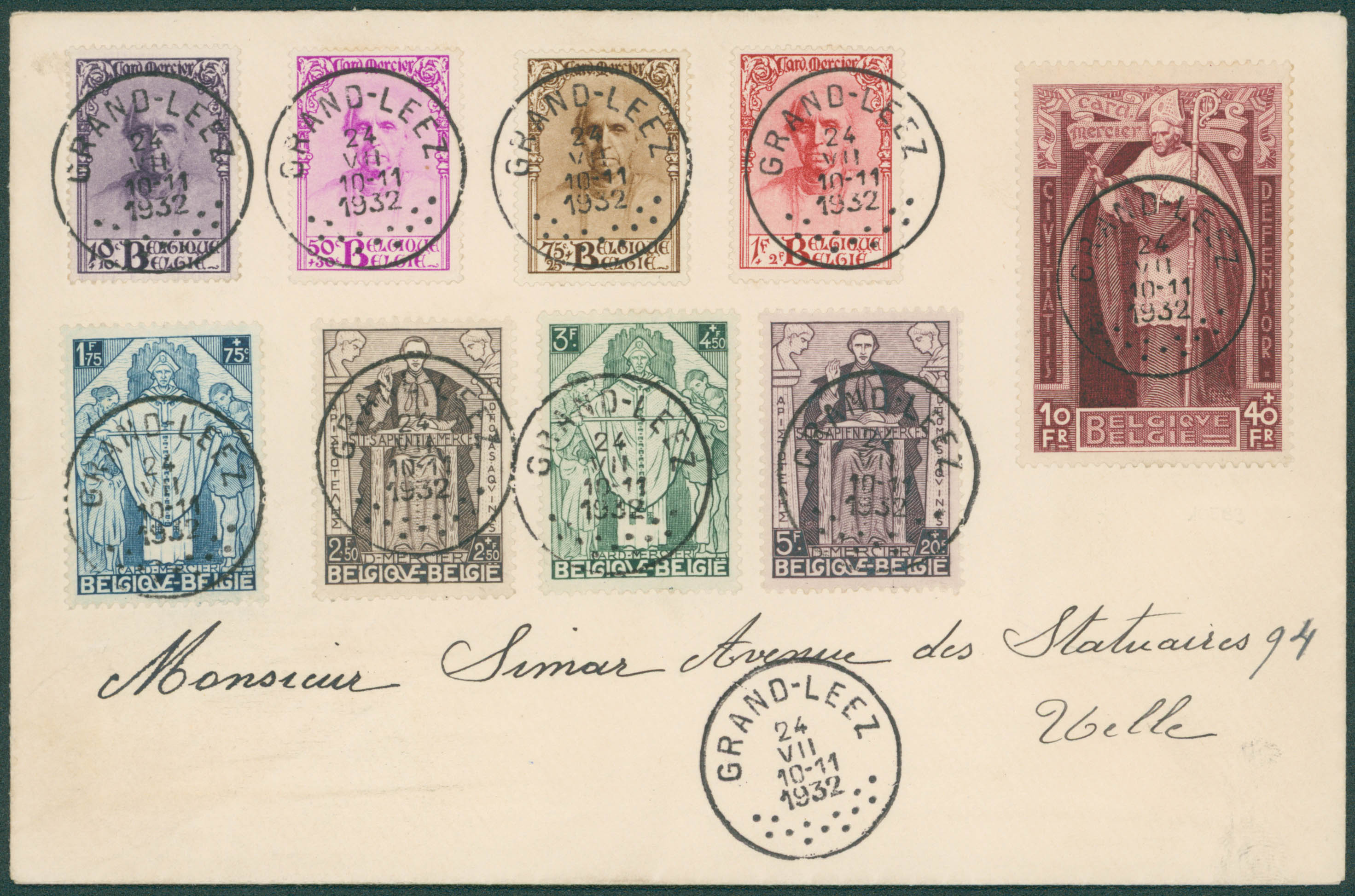 342 à 350 obl Grand-Leez 24/7/1932 vers Melle.