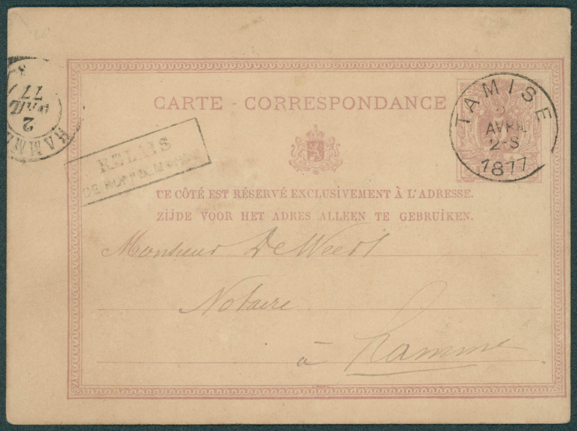EP 5c obl Tamise 2/4/77 + encadré 'Relais de Ruppelmonde' vers Hamme, càd arrivée. Texte au verso.'