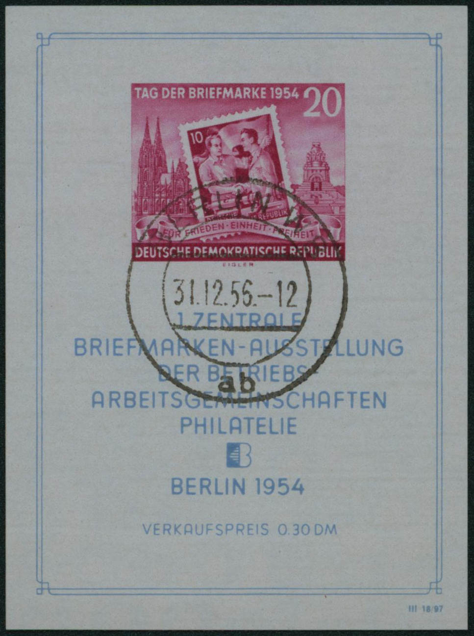 D.D.R. - Mi BL 10 XII z oblitéré Berlin 31.12.56 - papier cotelé (Geripptem Papier) - Cote 2000? - Certificat photo Henry Mayer.
