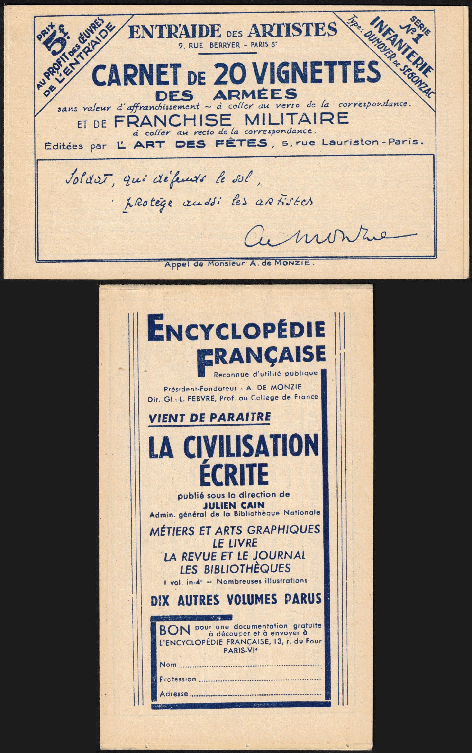 Franchise militaire - Yv. 10A en carnet de 20 vignettes XX. Cote 320?. TB
