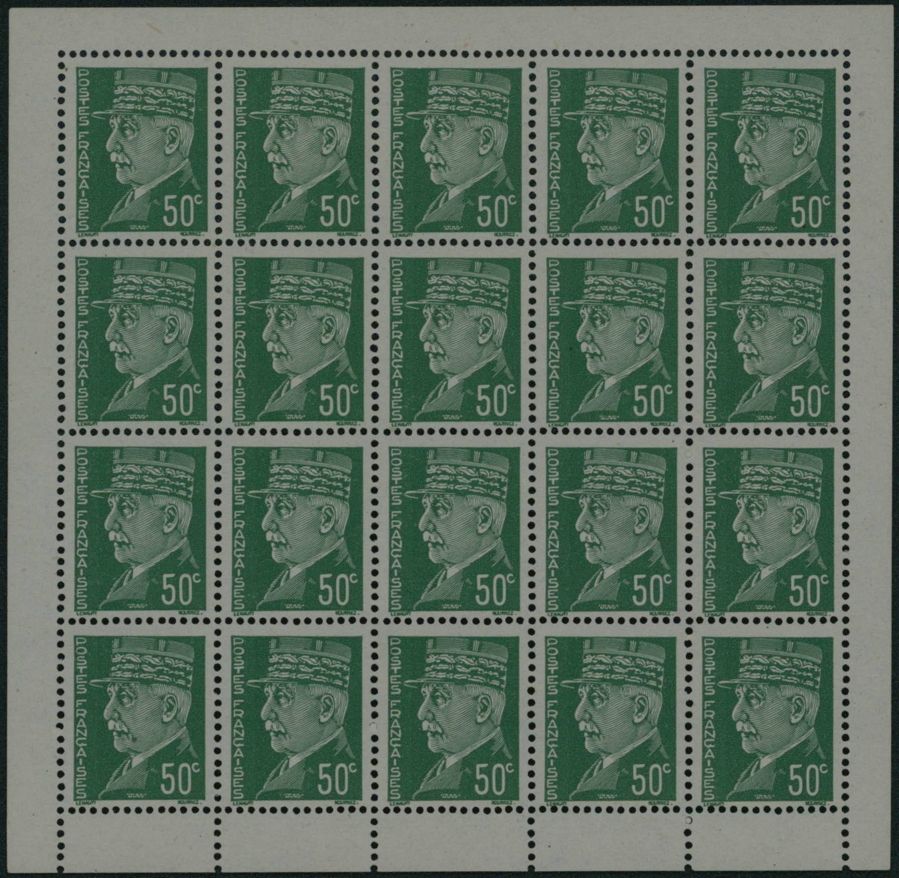 Falsifications, timbres de propagande. Mi KB 40A - Pétain 50c vert en bloc de 20 XX.