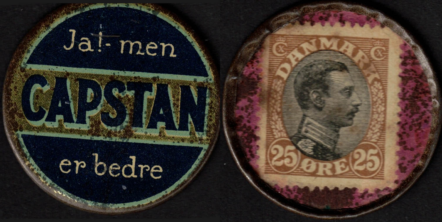 Danemark - Timbre monnaie - Yv. 107 - Publicité au verso 'Capstan'.'