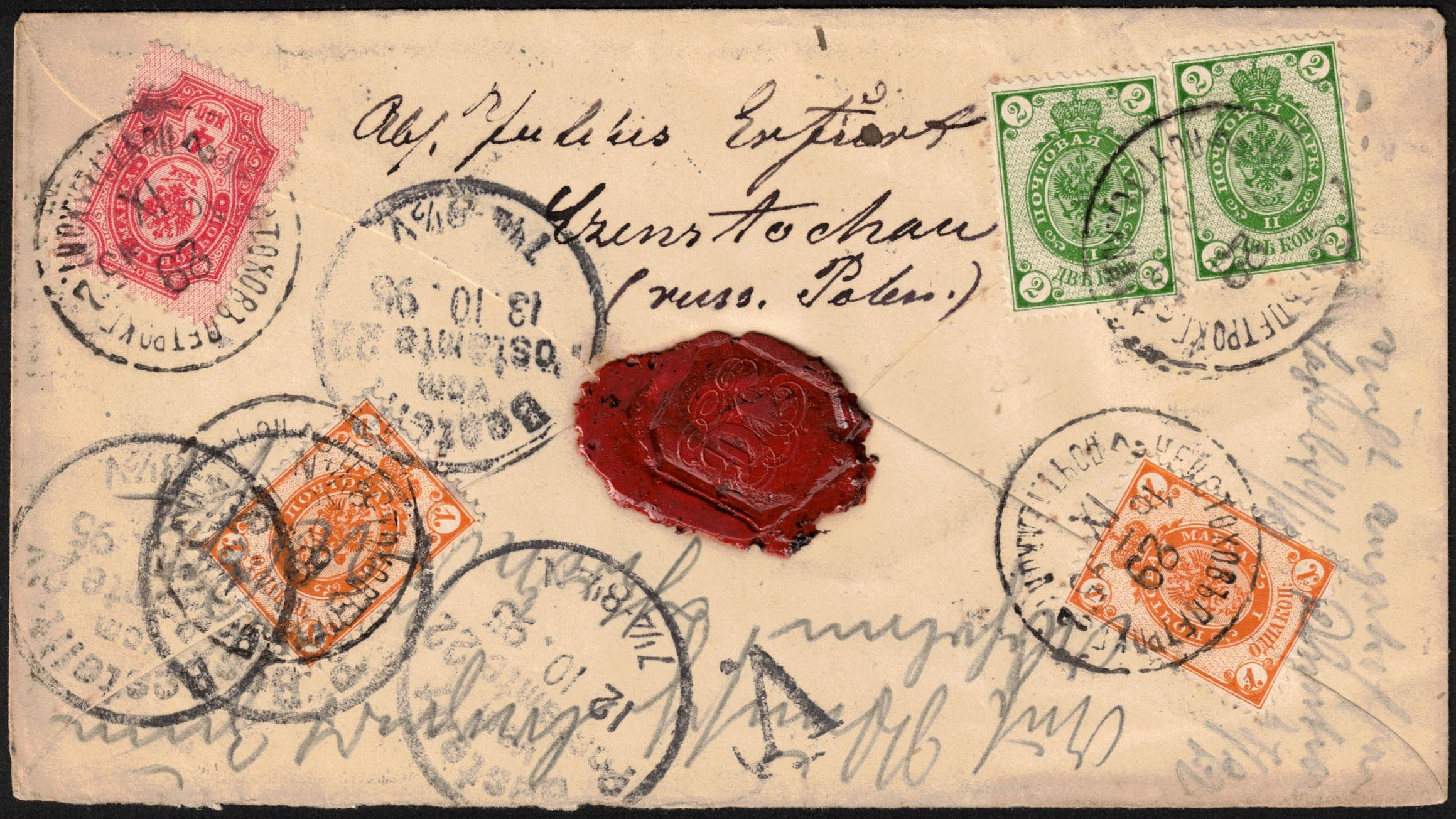 Pologne - Russie EP 10k + Yv. 38x2-39x2-41 en rec de Czestochowa vers Berlin, càd arrivée le 13/10/95. TB