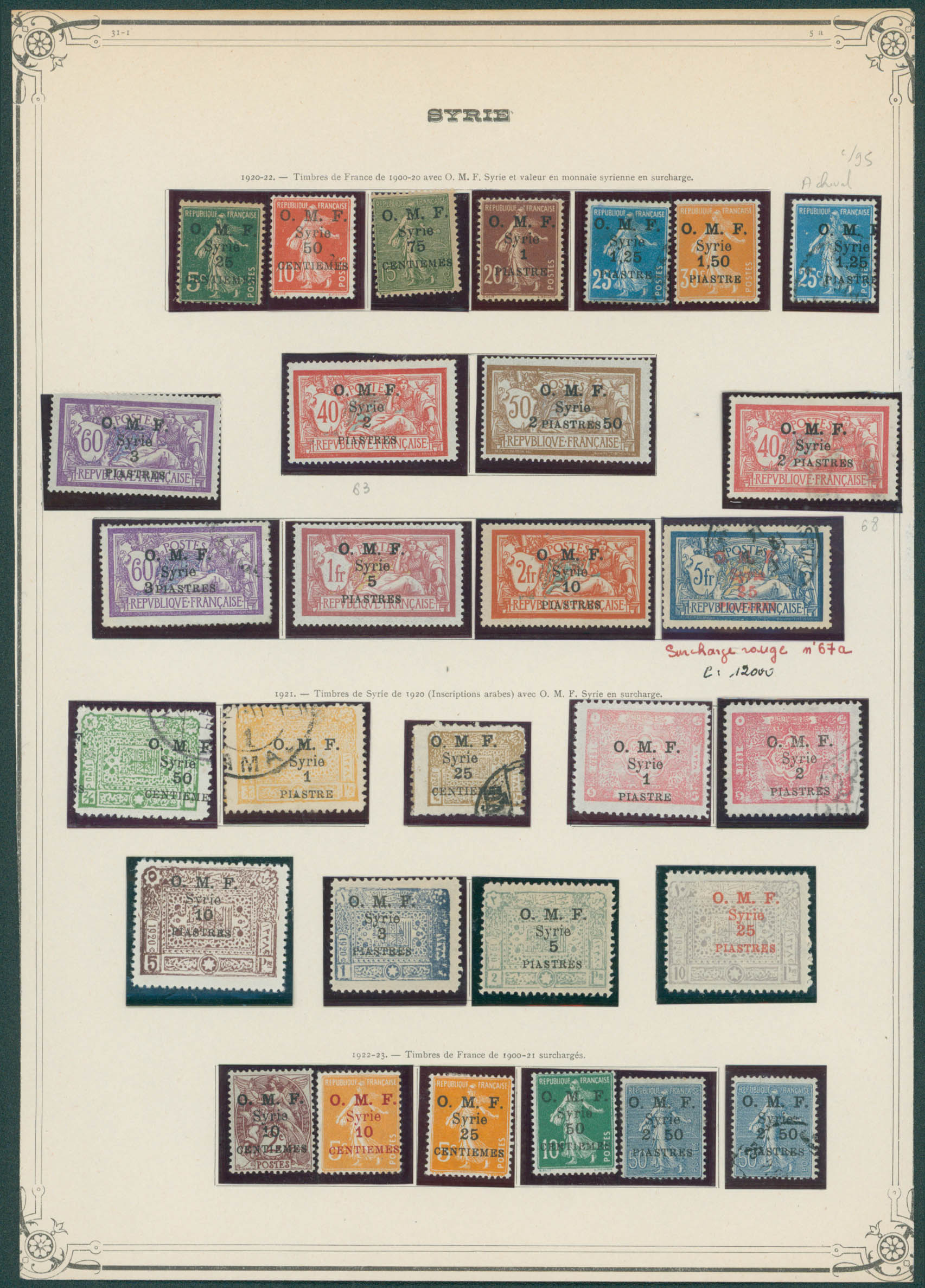Syrie - collection obl/X/XX entre 1919 et 1945 dont 34/44 X signé Brun, variétés doubles surcharges, surcharges renversées, postes annexes. Superbe ensemble.